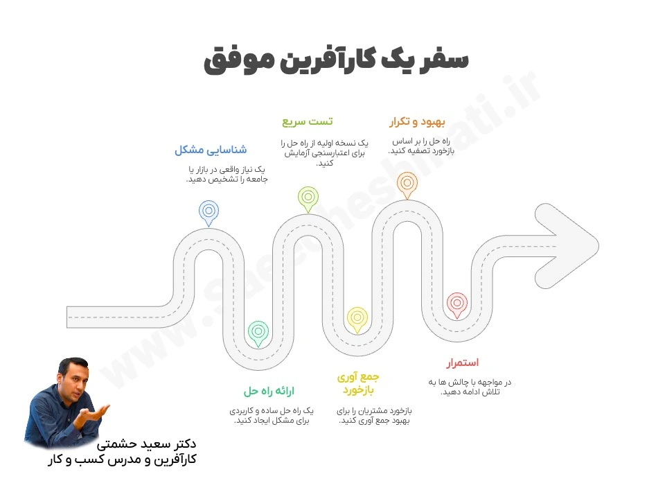موفقیت در کارآفرینی به جادو یا فرمولهای عجیبوغریب وابسته نیست. کافی است مشکلی واقعی را پیدا کنید، راهحلی ساده ارائه دهید، آن را سریع آزمایش کنید، با بازخورد مشتریان بهبودش دهید و با پشتکار ادامه دهید. این مسیر ممکن است چالشبرانگیز باشد، اما با ذهنیت درست و اقدامات عملی، میتوانید ایدههایتان را به واقعیت تبدیل کنید و کسبوکاری موفق بسازید. حالا، اولین قدم شما چیست؟